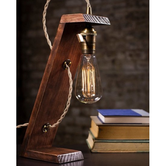 Kişiye Özel - Ahşap Edison Tasarım Masaüstü Lamba, Saat, Tasarım Saat, Farklı Saat
